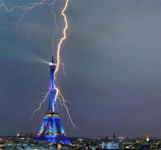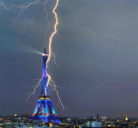 Hình ảnh sét đánh thẳng vào đỉnh tháp